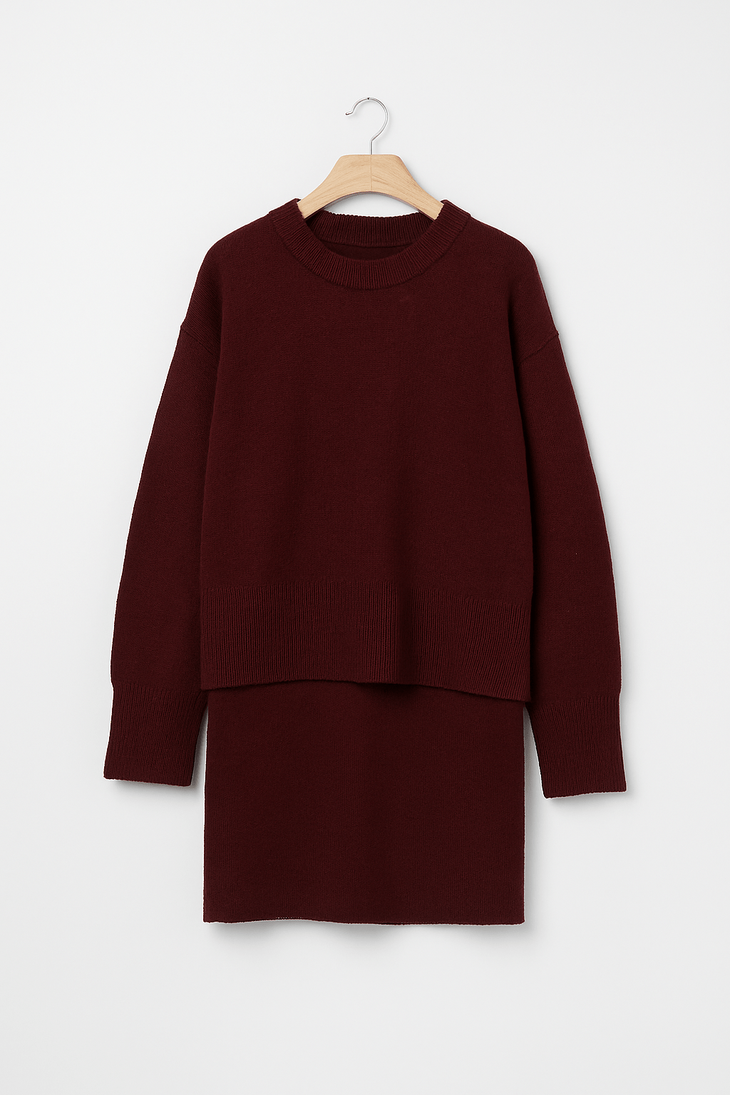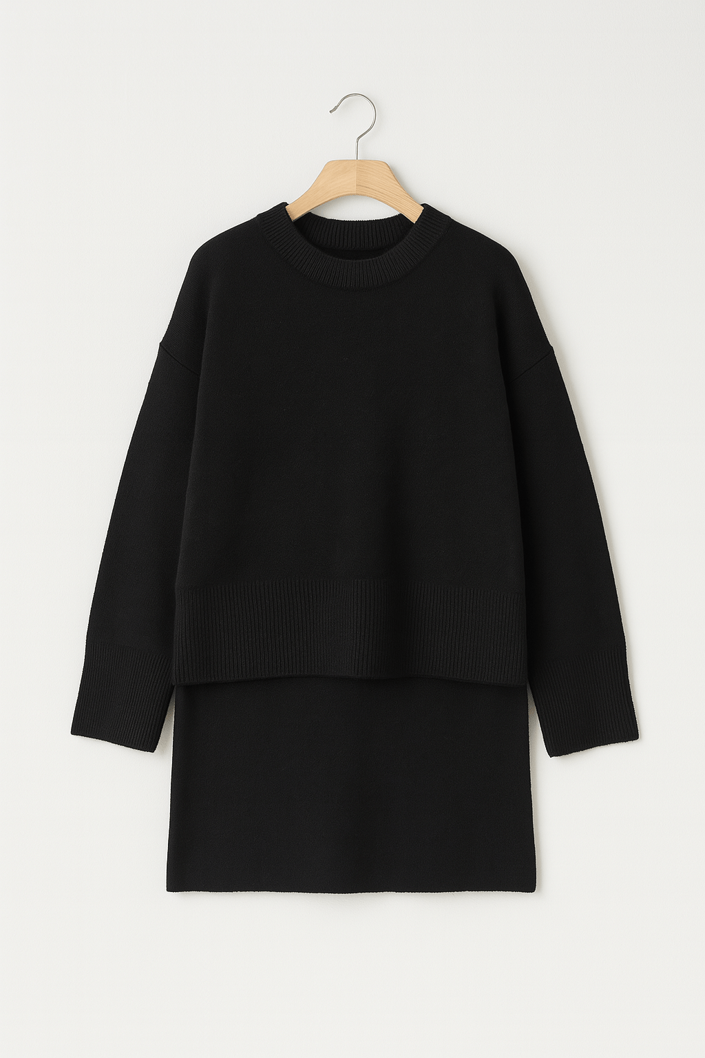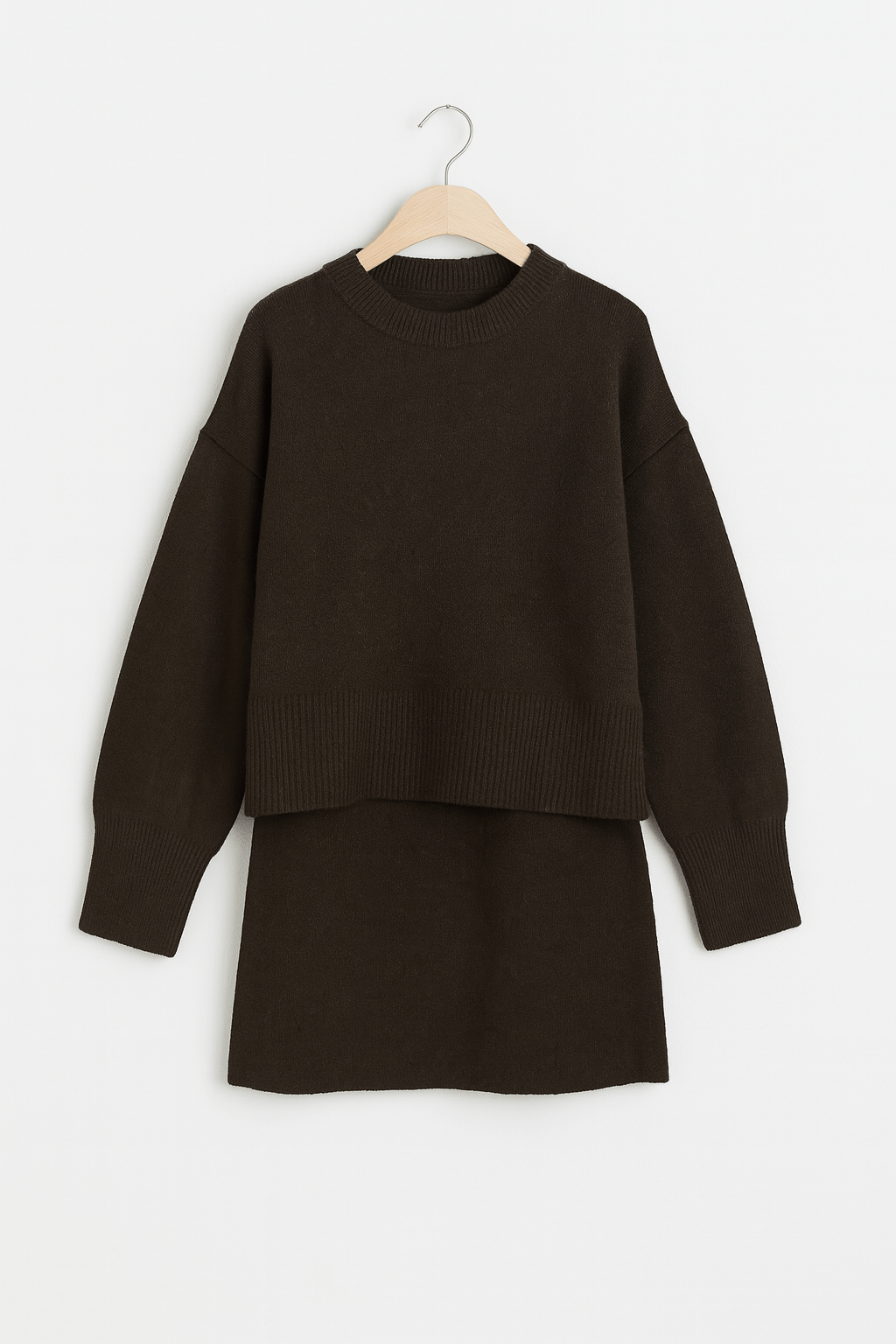 Le pull en tricot ample et la jupe flatteuse se complètent pour créer un ensemble stylé pour les journées plus fraîches – idéal pour des looks urbains, au bureau ou pour des promenades d'automne détendues.