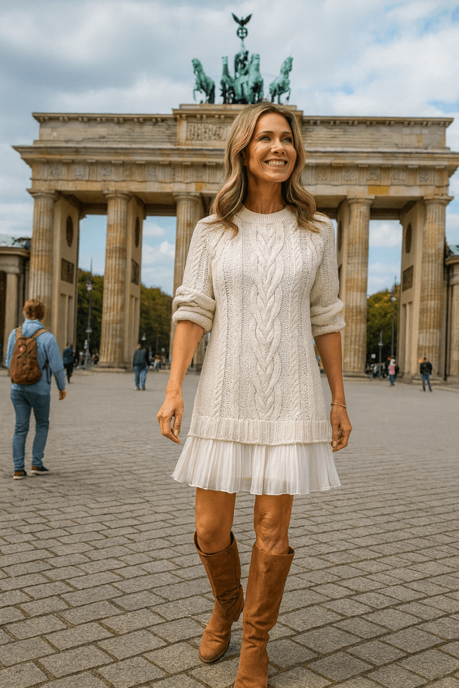 Leonie associe un tricot douillet à une touche de féminité. La robe de style pull a une coupe droite flatteuse et un ourlet plissé délicat qui apporte une touche chic et ludique à son motif en torsades intemporel. Cette robe est idéale pour les journées fraîches et se transforme facilement d'une tenue décontractée en une tenue de soirée élégante. Associez-la à des collants et des bottes pour un look confortable ou à des talons pour un look plus raffiné.