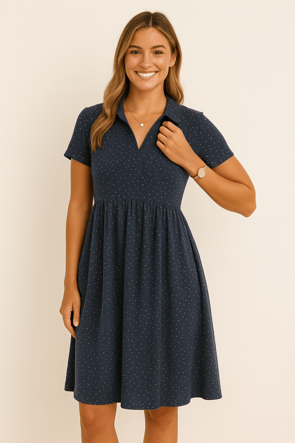 La robe midi Zita à pois et à manches courtes allie quotidien et charme dans un équilibre parfait.