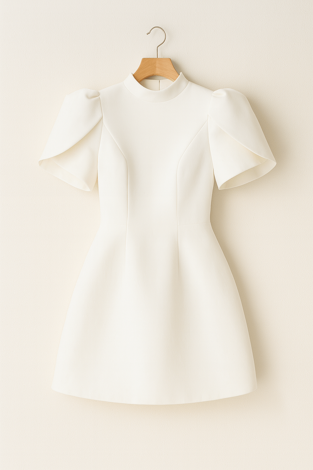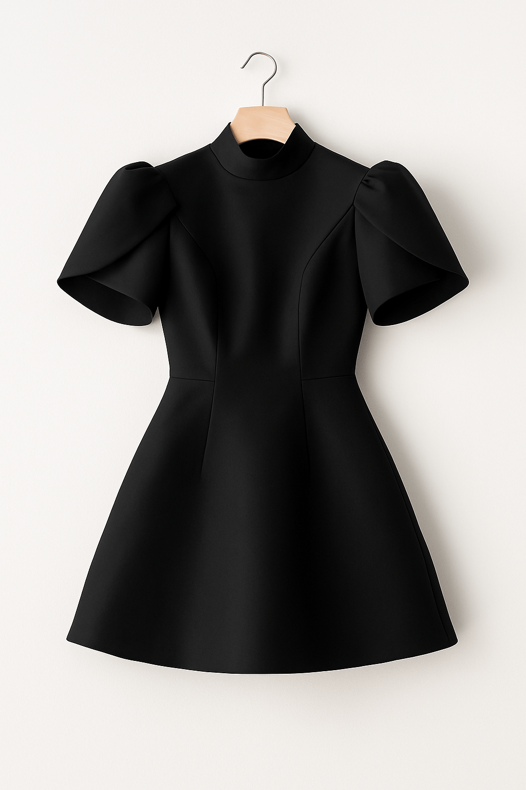 La Robe Mini Structurée Michelle avec Manches Bouffantes incarne l'élégance moderne avec un charme architectural.