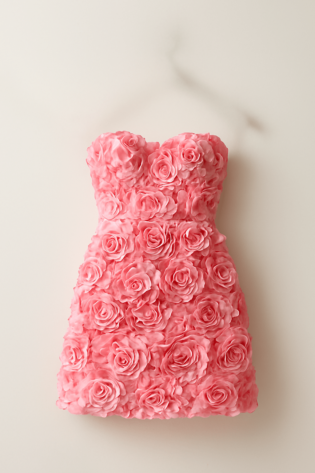Avec son relief floral structuré, sa coupe sans bretelles et sa silhouette cintrée, cette robe dégage une élégance ludique et un charme stylé.