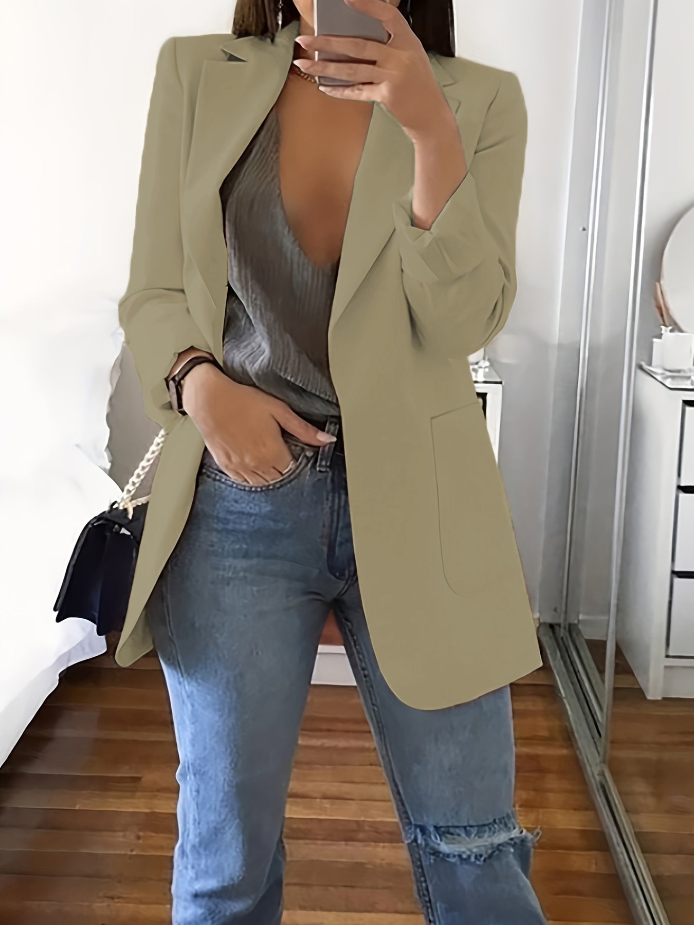 Le design intemporel de ce blazer ajoute une touche de classe à n'importe quelle tenue. Portez-le par-dessus une blouse pour un look formel au bureau ou jetez-le simplement sur un T-shirt pour un style décontracté. La coupe est adaptée à votre confort, vous permettant de vous sentir en sécurité et détendue toute la journée.