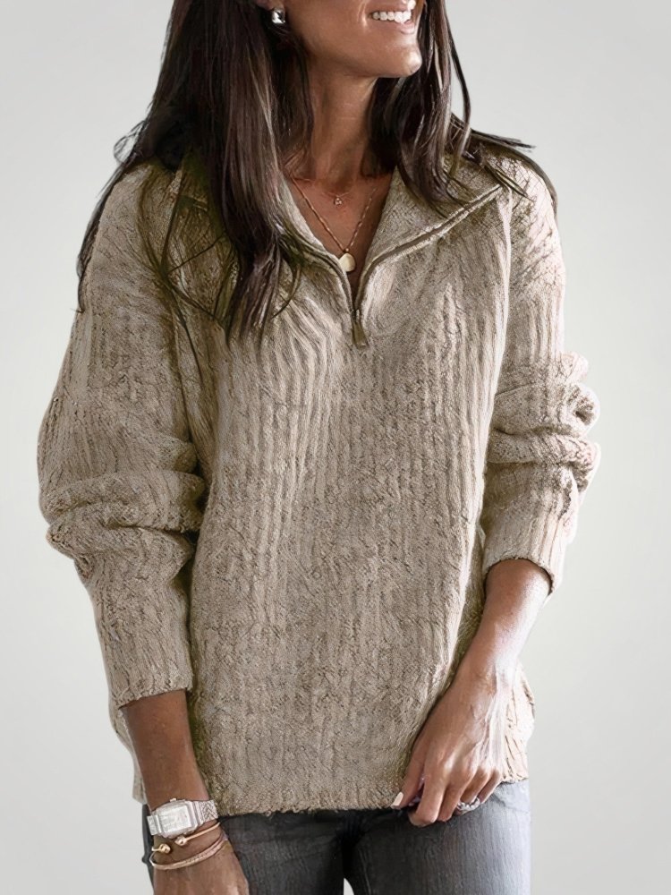 Découvrez le pull zippé, un incontournable pour toute garde-robe moderne. Ce pull allie confort et style, idéal pour des journées décontractées ou des soirées cosy. Avec sa fermeture éclair pratique, il s'enfile et se retire facilement tout en ajoutant une touche chic à votre tenue. Parfait pour les femmes qui recherchent chaleur et élégance au quotidien.